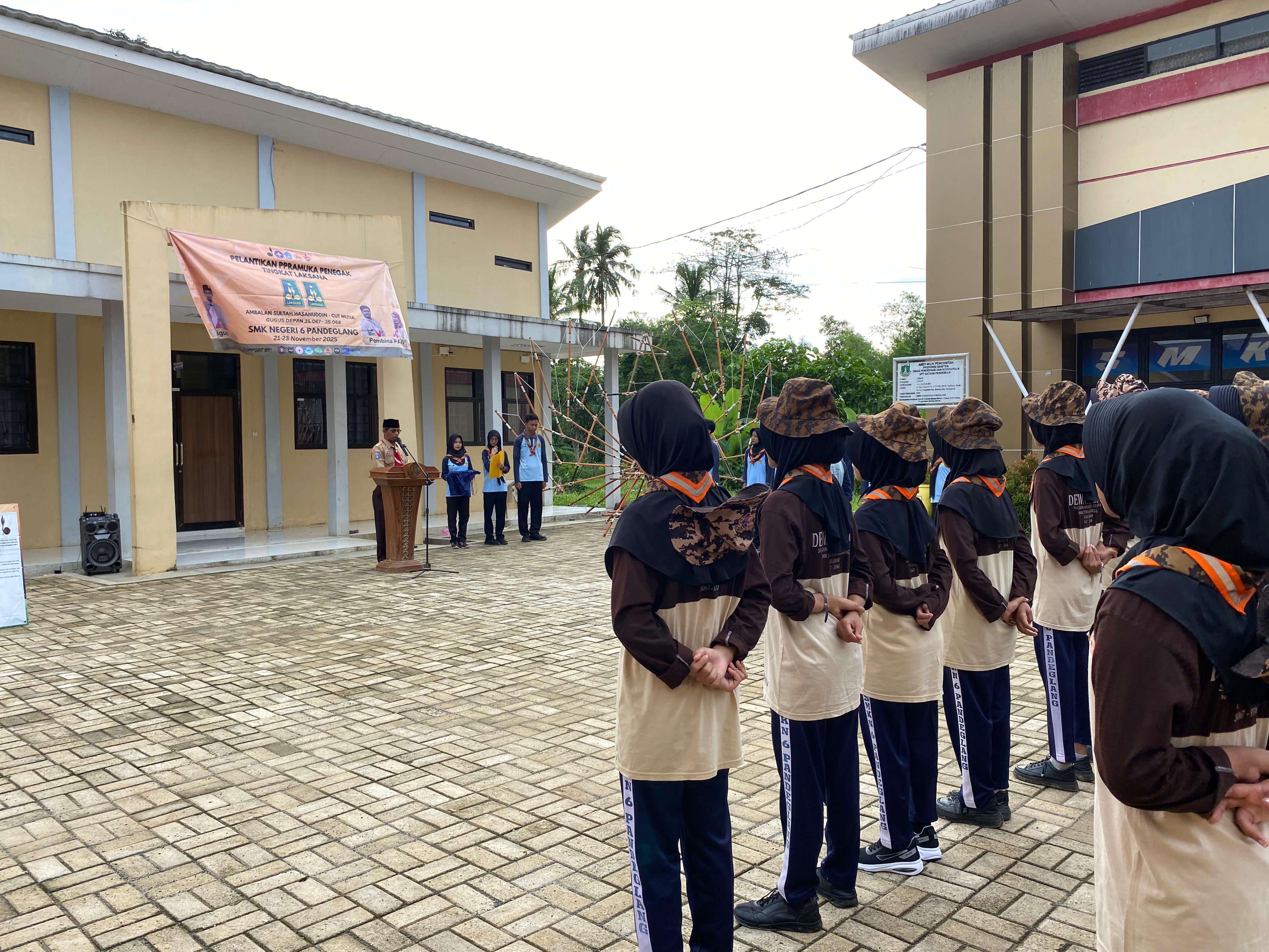 Sobang, 23/11/2025 — SMK Negeri 6 Pandeglang kembali melaksanakan Pelantikan Pramuka Penegak Tingkat Laksana Ambalan Sultan Hasanuddin – Cut Mutia Gugus Depan 35.067 – 35.068. Kegiatan tahunan ini berlangsung selama tiga hari dan diikuti dengan antusias oleh para Pramuka Penegak kelas XI.